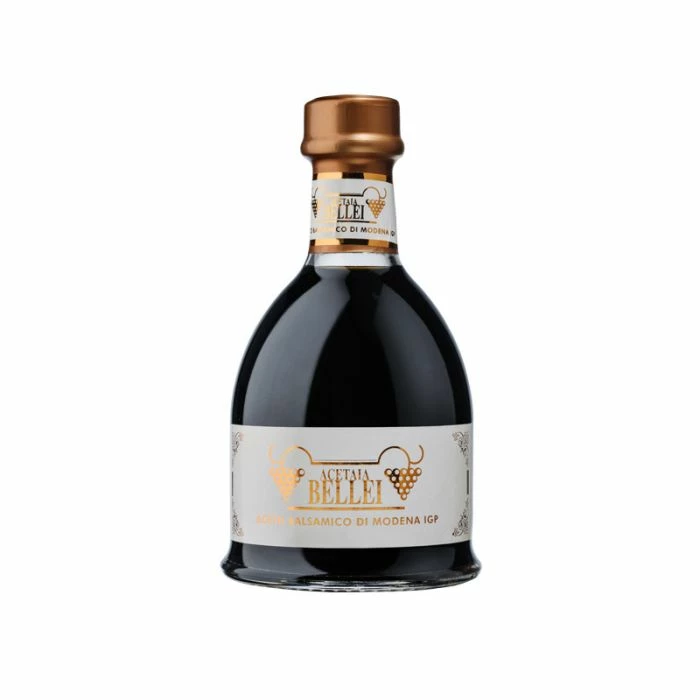 L’aceto balsamico di Modena prodotto dall’acetificio Bellei, è un prodotto selezionato che vanta della denominazione IGP. L’aceto balsamico viene prodotto a partire da uve autoctone dell’Emilia Romagna; Bellei seleziona le migliore uve, concenta i mosti e invecchia questo prodotto in botti di rovere per un minimo di 60 giorni. Ne esce quindi un aceto balsamico di media struttura, piacevole e delicato con una bassa densità .