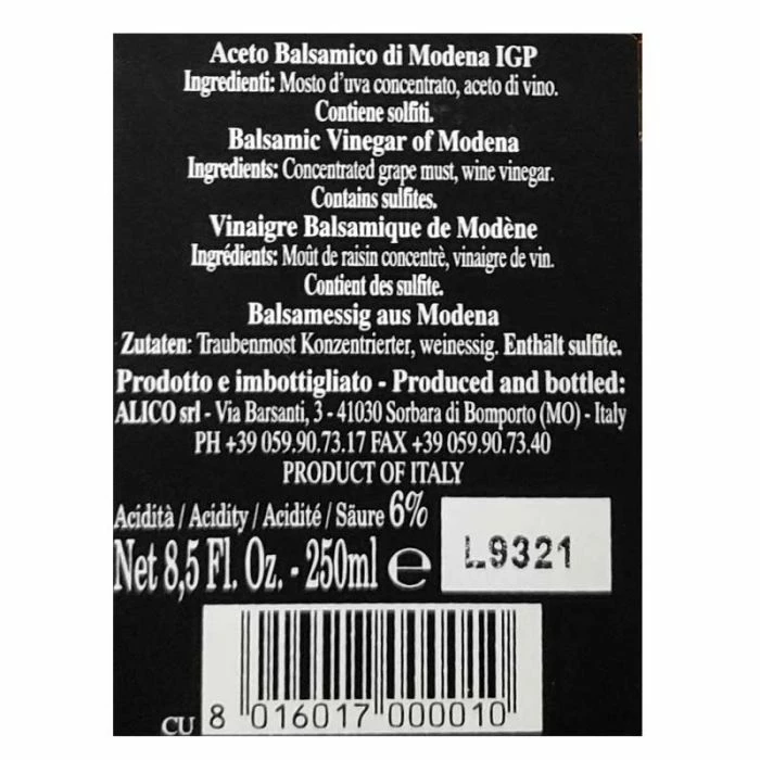 | ingredienti | mosto d'uva cotto, aceto di vino. |