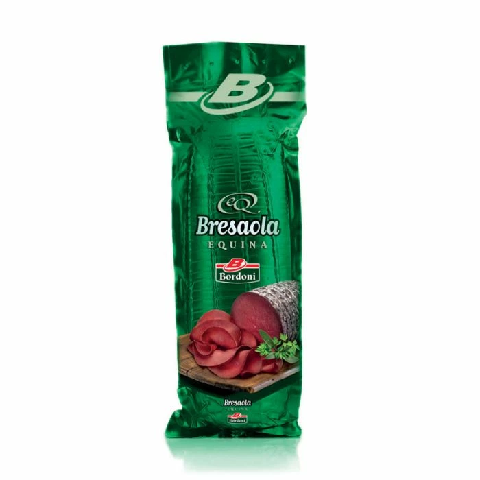 Bresaola Equina Bordoni 2,5 Kg in corda è uno dei salumi più noti, è ottenuto dalla selezione di parti nobili del cavallo ricavabile dalle fasce muscolari La Bresaola Equina Bordoni 2,5 Kg e è riconoscibile dal suo gusto unico ed inconfondibile, ed è indiscutibilmente sinonimo di freschezza e qualità. Si presenta con una compostezza omogenea, di colore rosso, rinomata per la sua carne genuina e magra ad alto contenuto proteico, consigliabile anche durante le diete. È possibile ricercarla anche nella sua verità speziata ma pur sempre di ottima bontà riconducibile ad un prodotto di pregio e ben saporito.