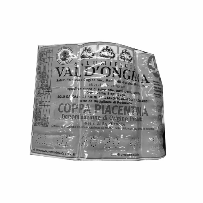 La Coppa Piacentina DOP del salumificio Val D’Ongina è prodotta con carne di suino allevato in Emilia Romagna o Lombardia, da questi viene utilizzata la carne della zona cervicale per preparare questa magnifica coppa piacentina è prodotta con i muscoli cervicali di maiali pesanti nati e allevati in Emilia Romagna o in Lombardia ed il peso della coppa fresca e non lavorata non può essere inferiore a 2,5 kg. La sua caratteristica fondamentale è la dolcezza, data dal perfetto equilibrio tra il grasso e la carne ed un utilizzo molto oculato del sale e delle spezie che possono coprire il sapore del salume.