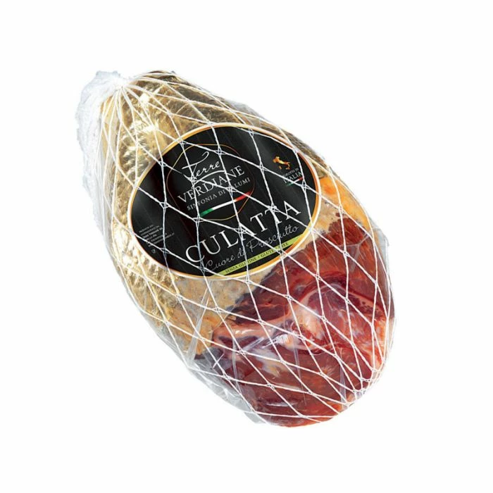Culatta spelata Terre Verdiane 5Kg è prodotta a Zibello in provincia di Parma. La Culatta spelata Terre Verdiane 5Kg è prodotto con le migliori parti delle cosce di suino che vengono attentamente selezionate dal Salumificio, Le carni vengono salate, la stagionatura dura per non meno di 12 mesi. Questo prosciutto viene rivestito in parte dalla sua cotenna e viene salato a mano, la parte magra esterna viene ricoperta di sugna per mantenerlo morbido nel tempo.