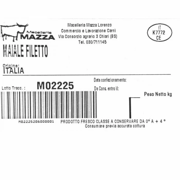 Filetto di Maiale italiano corrisponde ad un pezzo di carne molto pregiato e tenero che si presta per essere utilizzato per cucinare molti piatti succulenti. La caratteristica fondamentale di questa carne è la sua tenerezza e il fatto di essere tendenzialmente magra e ricca di gusto. Il Filetto di Maiale italiano 800g deriva da suini 100% italiani.