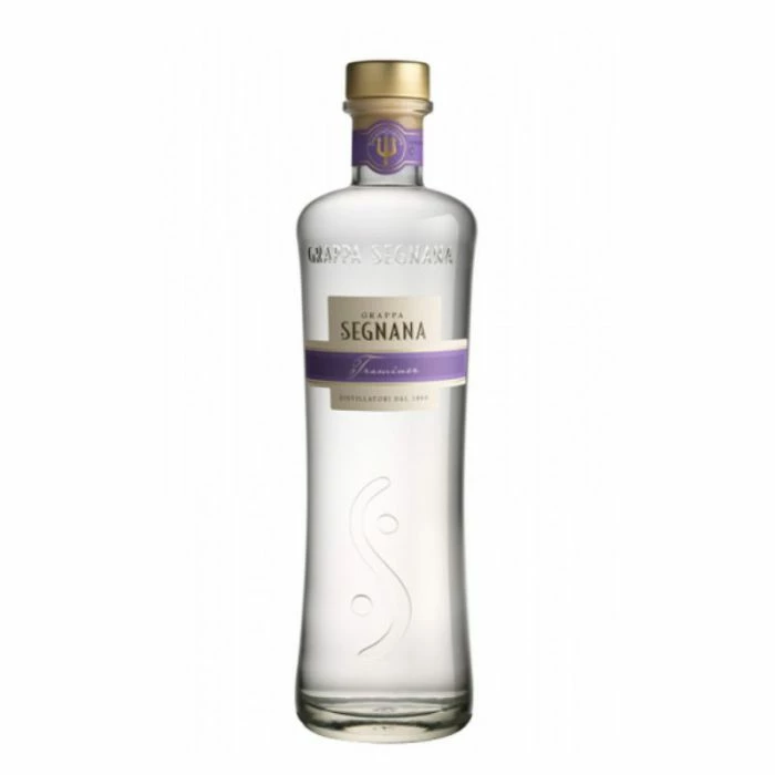 È ottenuta da vinacce di Traminer trentino provenienti da vigneti collinari ottimamente esposti, dove il clima fresco permette lo sviluppo di aromi molto intensi. Grazie a una lenta distillazione, prevista dal sistema discontinuo a bagnomaria di vapore, mantiene l’intensa aromaticità dell’uva d’origine.