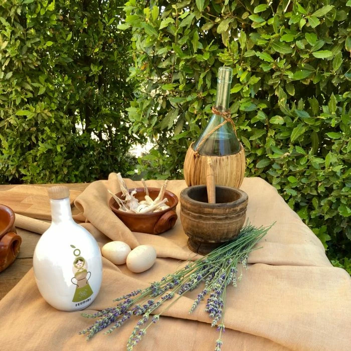 Feudibi è un Olio extravergine di oliva prodotto 100% italiano nelle Terre di Montenero di Bisaccia ed estratto a freddo. Custodito in orcia di ceramica realizzato artigianalmente per conservare le proprietà e le caratteristiche dell’olio.