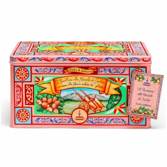 ’alta qualità artigianale di questo panettone sarà preservata grazie alla nuova elegante e colorata scatola in latta firmata Dolce & Gabbana, disegnata appositamente dalle più celebri maestranze artistiche siciliane: i colori vivaci e i soggetti rappresentati, che si ispirano ai motivi decorativi del carretto e ai personaggi dell’Opera dei Pupi