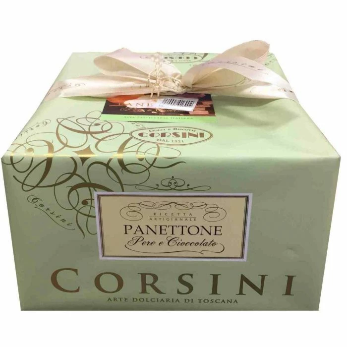 Panettone Pere e Cioccolato Corsini Carta e Fiocco 1 Kg è un prodotto dell’azienda Corsini Biscotti in provincia di Grosseto in Toscana. La famosa Corsini Biscotti produce questo Panettone con una particolare attenzione alla scelta di materie prime di altissimo livello e del rispetto dei tempi di lavorazione: lunga lievitazione per produrre un panettone ad alta digeribilità. La digeribilità del panettone tradizionale è altissima infatti grazie alla doppia lievitazione che raggiunge le 40 ore nel caso del panettone all’albicocca Corsini e l’utilizzo di lievito selezionato, il panettone acquisisce una morbidezza e una digeribilità tipica dei dolci freschi di alta pasticceria. Vendita online del panettone Corsini, prezzi speciali per il Natale.