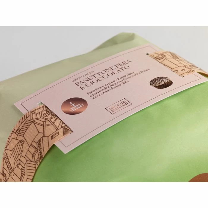 Panettone Pere e Cioccolato Fiasconaro 1Kg è un dolce artigianale, prodotto da forno ad alta digeribilità che viene proposto con gocce di cioccolato e cuori di Pera Williams ricoperto di glassa bianca con granella di cioccolato. Una lenta e graduale lievitazione di 36 ore garantiscono una ottima digeribilità e fragranza al Panettone Pere e Cioccolato Fiasconaro 1Kg, tutto ovviamente nel rispetto della tradizione dolciaria siciliana. Il Panettone Pere e Cioccolato Fiasconaro 1Kg è un vero esempio di dolce tipico siciliano.