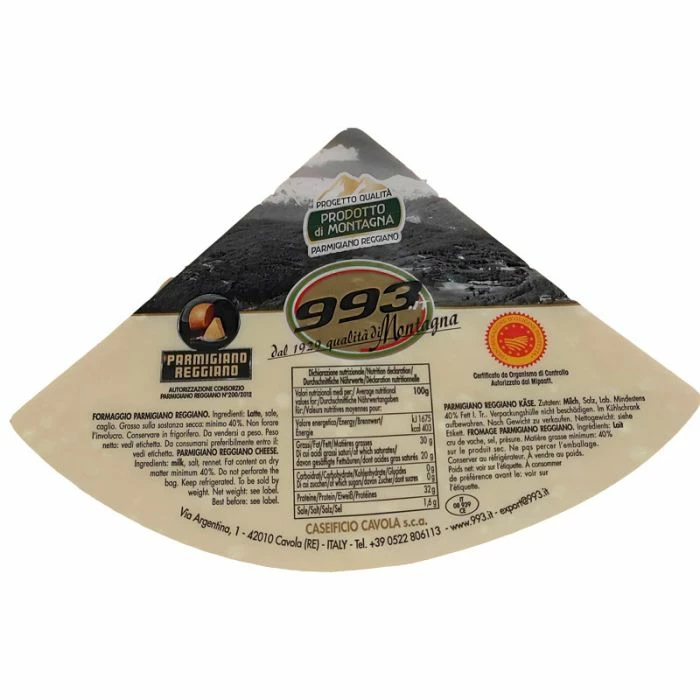 Parmigiano Reggiano DOP 30 mesi 1/8 4,5Kg 993 è un prodotto che si può fregiare del marchio Prodotto di Montagna, questo è un marchio che deriva da un progetto sostenuto dal Consorzio del Parmigiano Reggiano con lo scopo di valorizzare chi produce il celebre formaggio in ambiente di montagna. Il Parmigiano Reggiano DOP 30 mesi 1/8 4,5Kg 993 è appunto un prodotto che si può annoverare tra questi quindi si può dire che l’alimentazione delle vacche proviene da colture che per almeno in 60% provengono da zone di montagna e il latte è al 100% munto in zone di montagna. Il Parmigiano Reggiano DOP 30 mesi 1/8 4,5Kg 993 ha beneficiato anche dei primi 12 mesi di stagionatura in ambiente di montagna e tutto questo ha sicuramente e indubbiamente inciso sulle sue caratteristiche.