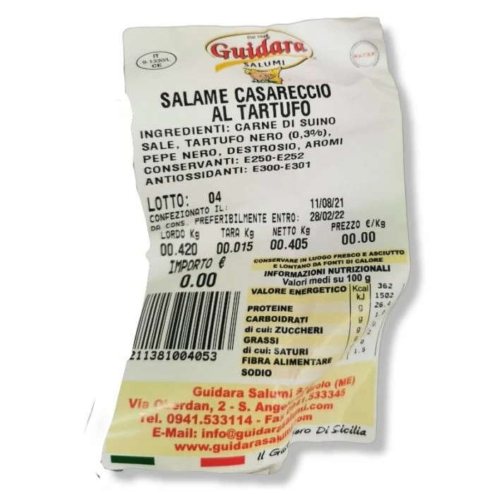 Il salame al tartufo Guidara è un prodotto che viene realizzato utilizzando solo materie prime di qualità superiore, con ricette uniche che si tramandano di generazione in generazione. Il salame nostrano al tartufo Guidara ha un gusto straordinario ed è amato da molte persone in tutto il mondo. Il salame Guidara è prodotto con l’impiego di materie prime pregiate. Ha un gusto straordinario, un vero must per tutti gli amanti del salame.