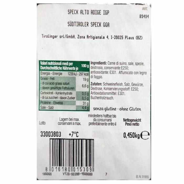 Recensisci per primo “Speck Alto Adige IGP Tirolinger 400g” Annulla risposta