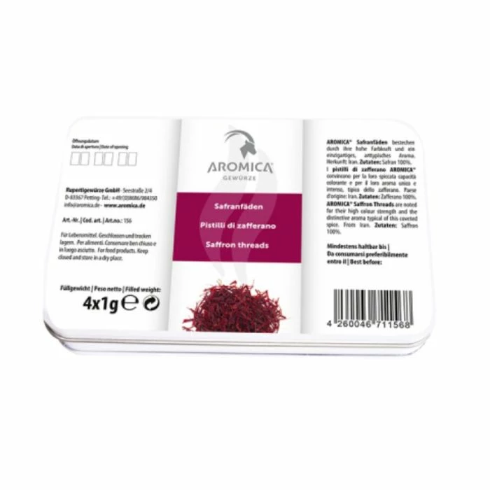 Il nostro zafferano in pistilli Aromica è un prodotto di altissima qualità, selezionato con cura e attenzione per garantire il massimo della fragranza e del sapore. I pistilli di zafferano sono raccolti a mano e lavorati con estrema precisione per preservare tutte le proprietà organolettiche della spezia. Il nostro zafferano è caratterizzato da un colore intenso e una fragranza inconfondibile, che lo rendono perfetto per arricchire i piatti più pregiati e raffinati. Grazie alla sua elevata concentrazione di crocina e safranale, il nostro zafferano in pistilli Aromica è in grado di conferire ai piatti un sapore intenso e persistente, oltre a un colore dorato e brillante. Utilizzalo per preparare risotti, paella, zuppe, carni e pesce, e scoprirai un mondo di sapori e profumi unici e inimitabili. Confezionato in pratiche bustine da 4 grammi, il nostro zafferano in pistilli Aromica è il prodotto ideale per chi cerca la massima qualità e la massima convenienza.